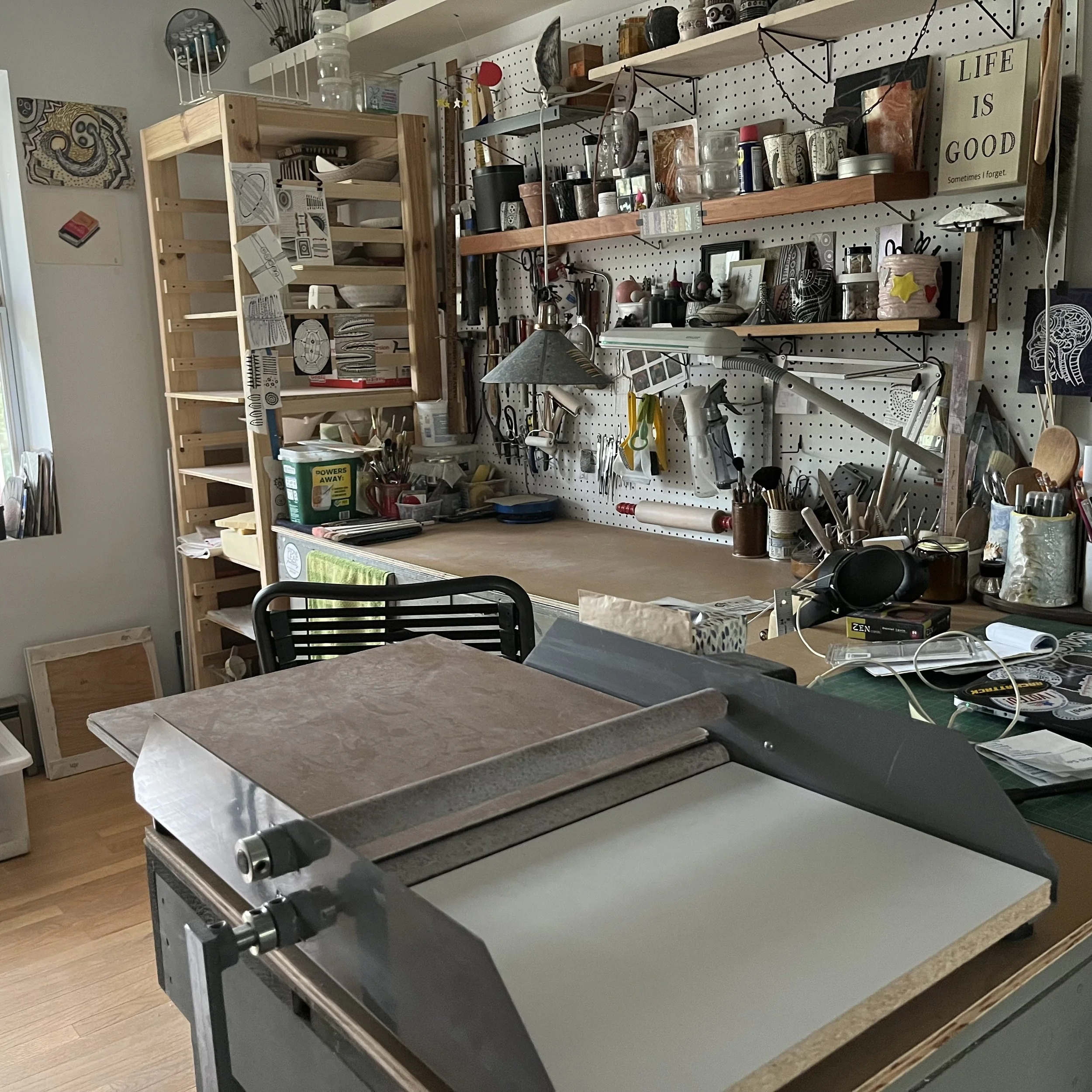 Later that year, Andryea chose to close the retail busines to focus her attention on her own studio practice where she rekindled her love for clay. Today, from a small, cozy studio in her home, she produces small batches of hand built functional and sculptural objects covered with patterns and designs in black and white that evoke not only a timeless simplicity but a connection to natural order.